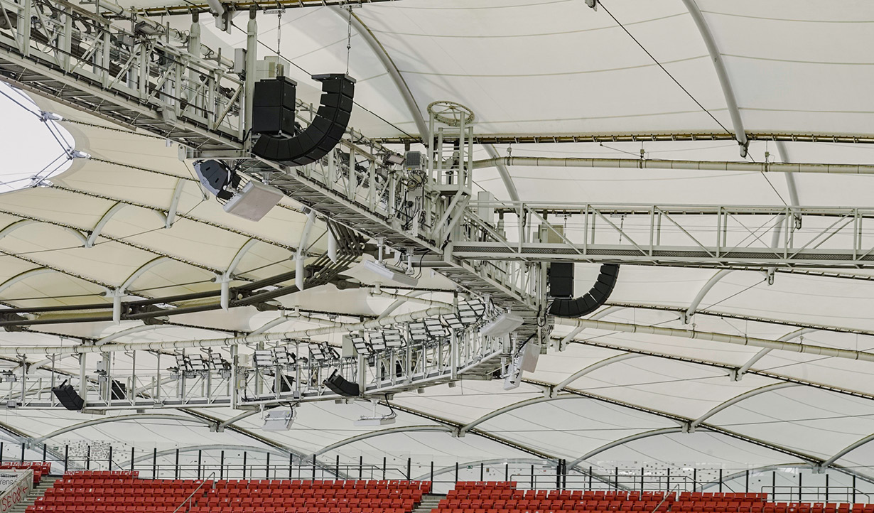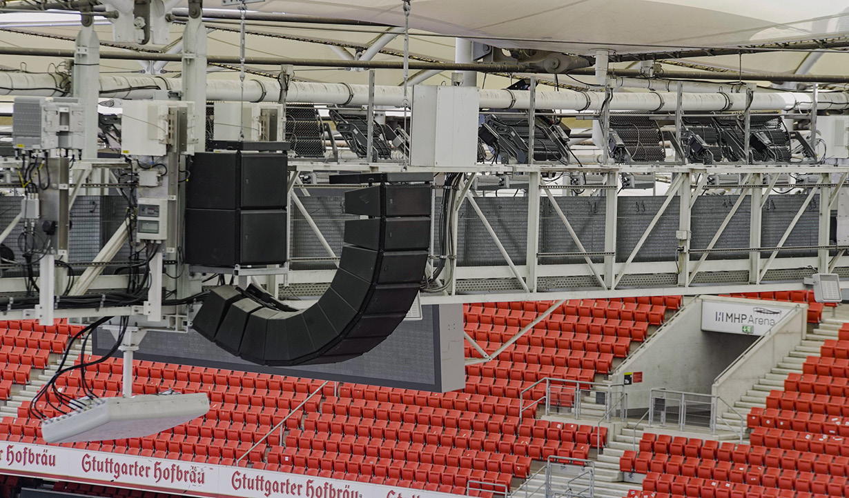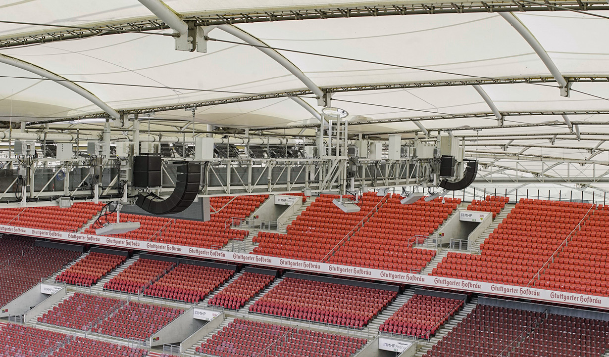 The new cutting-edge sound system at the MHP Arena Stuttgart serves its 61,000 seats and public areas with unparalleled RCF sound quality.