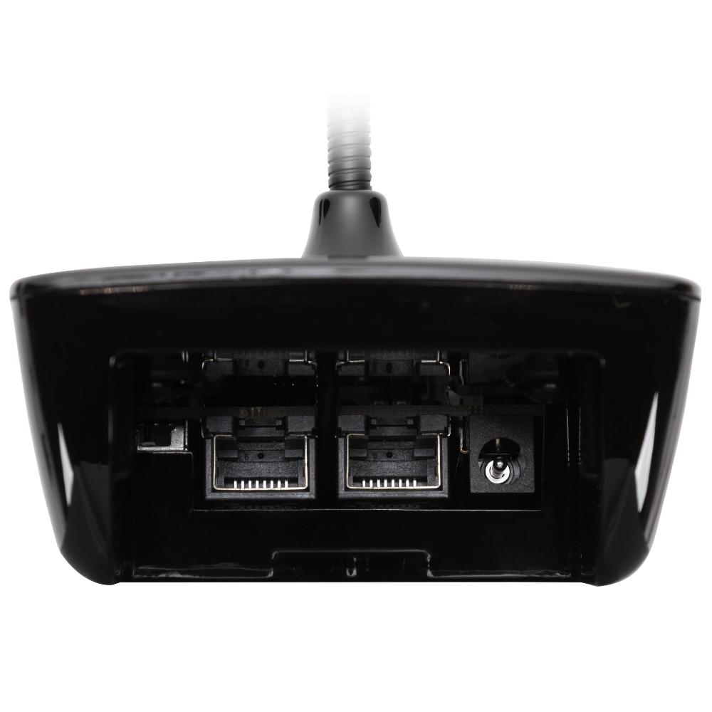 BM 404 is a desktop paging console that allows making selective calls to 4 zones. Specifically designed as a complement for Business Music systems, such as DMA amplifiers, the console is made of a shock-resistant polymeric body, fitted with an electret microphone on a 230 mm gooseneck, and a polyurethane foam windscreen. Connect up to 4 consoles on a single chain (interlocked) to each amplifier with a CAT5 cable (included). Dedicated buttons with LEDs allow for microphone activation and zone selection. Chime tone is selectable with a single on/off switch. The RCF BM-404 is ready to use out of the box and does not require any configuration.