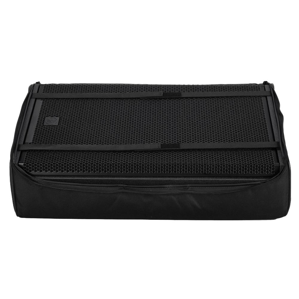Padded Cover for NX 912-SMA speaker. It features heavy-duty weatherproof polyester outer fabric, foam rubber padding, and zip openings with Velcro fasteners. The frontal cover can be opened and blocked with velcro on one side. It features multiple openings for handles, the rear connection panel, and the pole mount cap.