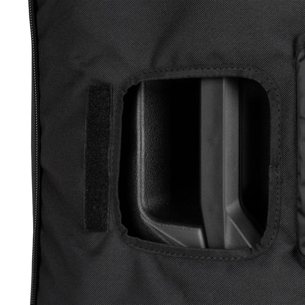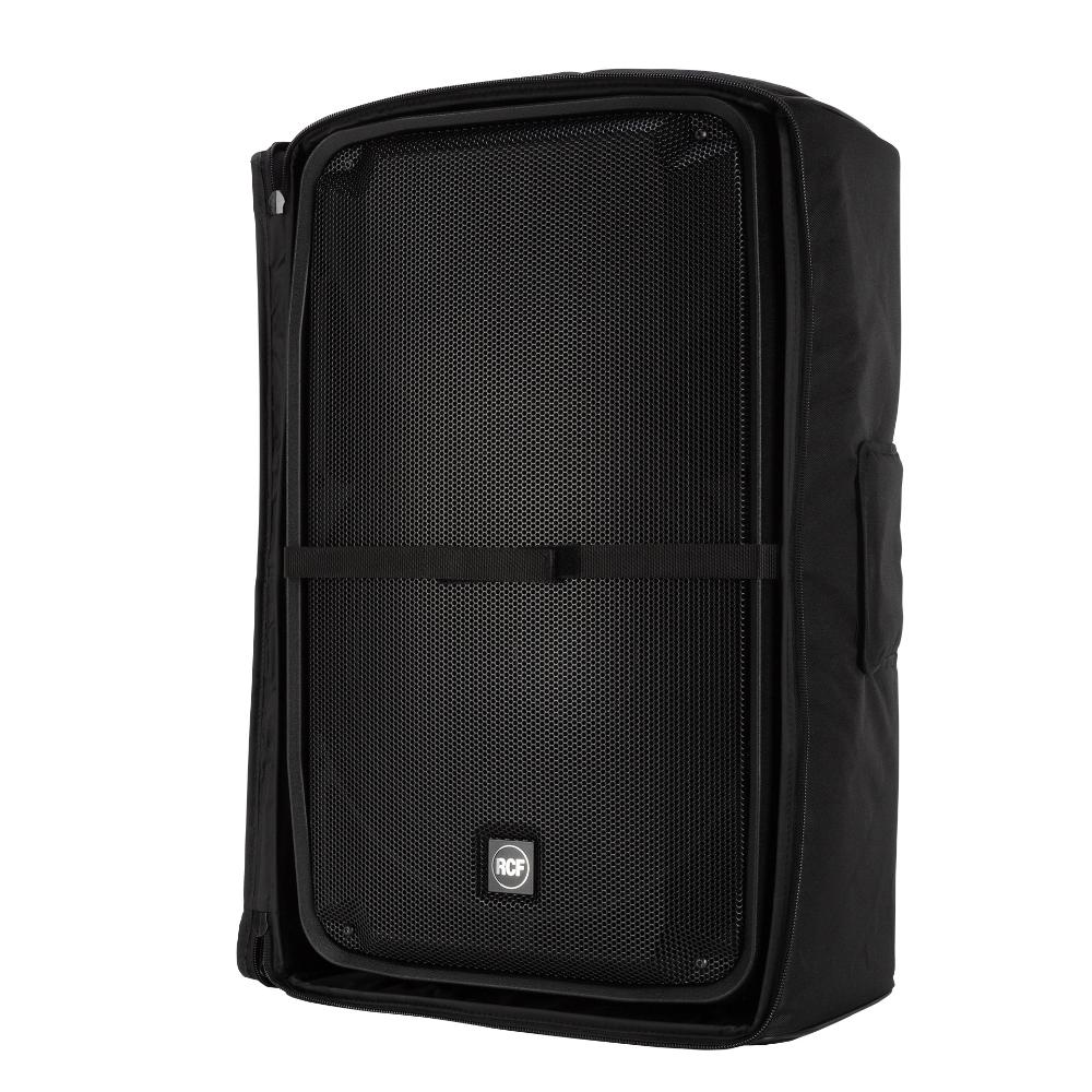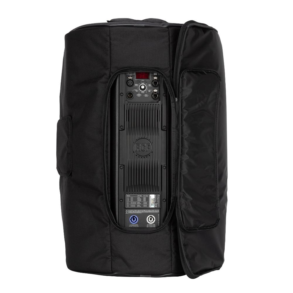 CVR HD 15 Padded Cover for 15” HD Two-Way Active Speaker. It features heavy-duty polyester outer fabric, foam rubber padding, and zip openings with Velcro fasteners.