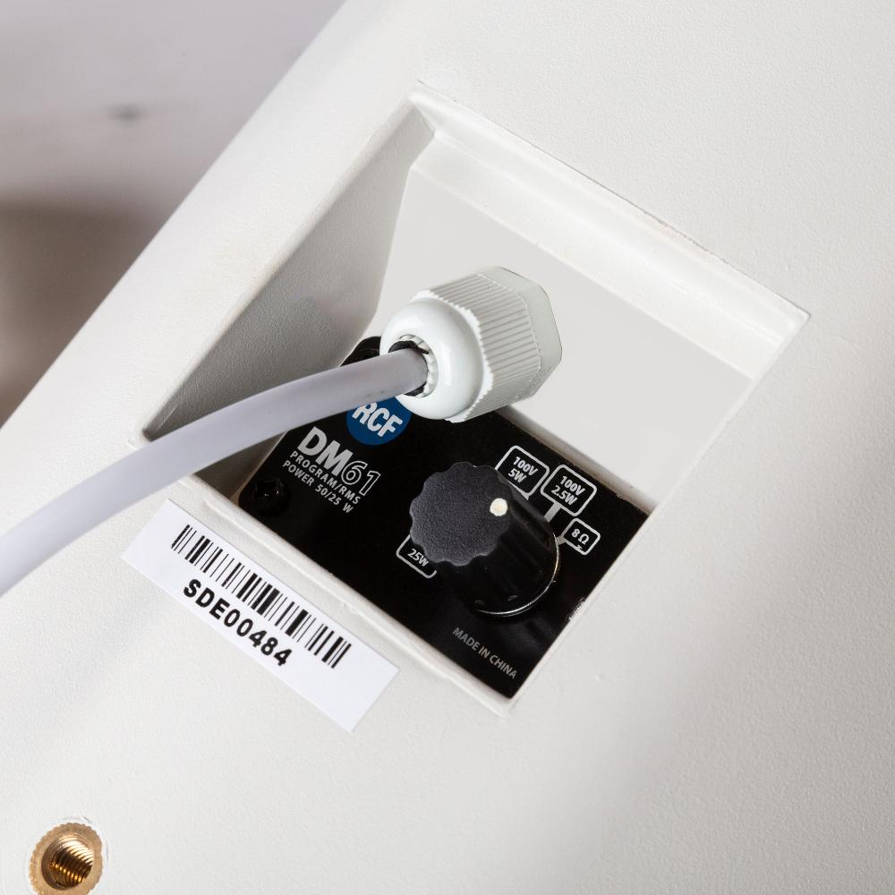 DM 61 is a compact two way speaker designed for constant voltage systems. The speaker provide natural, smooth sound reproduction ideal for use in business music systems and indoor/outdoor background music apllications. Connections to the loudspeaker line are made by using the two wire cable coming out from the loudspeaker rear side. The enclosure includes a protective perforated grille and an accessory for the wall mounting.