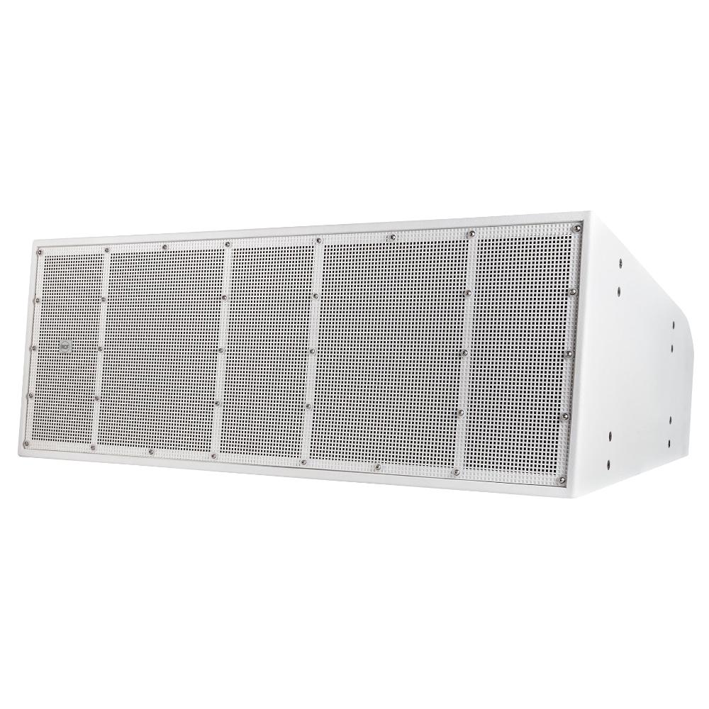 HVL 15-L1 is a three-way, bi-amp loudspeaker system for long-throw applications, outfitted with 2 x 15” woofers, 2 x 10” midranges, and 2 x 4.0” voice coil, titanium dome compression drivers. Equipped with the latest generation of RCF precision transducers with powerful neodymium magnets, HVL 15-L1 provides very high output and accurate sound and voice reproduction. The system, driven in bi-amped mode, can produce a max SPL of 144 dB MHF, handling 1000 W RMS (LF) + 900 W RMS (MHF). An internal passive filter provides crossover and equalization between the midranges and the compression drivers. The horizontal coverage is 90°, and the vertical coverage is 30°. A heavy-duty, weatherproof barrier strip provides connections. The cabinet is made of Baltic birch plywood. The finishing is a waterproof, textured, polyurea coating. The grille is in epoxy coated heavy-duty steel with open-cell fibers and water repellent woven-fabric backing. The back of the cabinet is shaped for under-balcony installation.