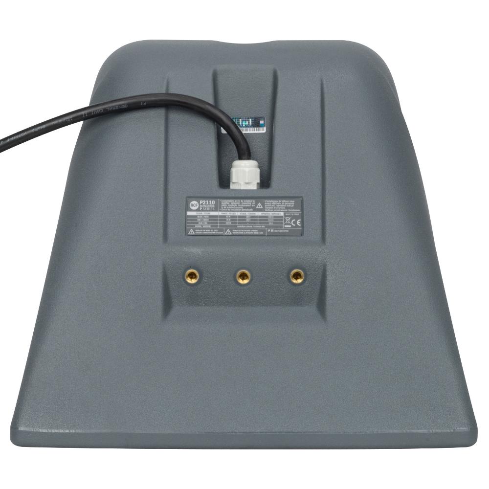 The P 2110T is a weatherproof full-range, wide-dispersion, coaxial two-way loudspeaker system for a variety of professional indoor or outdoor applications. The speaker can be installed individually or coupled in array configurations. The low-frequency transducer is a 10” woofer with a 2.5” voice coil. The high-frequency section combines a 1” RCF Precision compression driver with a 1.5” diaphragm assembly centrally-mounted in the throat of the LF driver, and loaded on a constant directivity CMD horn for smooth, wide dispersion. The P 2110T features a selectable line transformer for 70 - 100 volt applications, built-in LICC crossover, and Active Mosfet Compression Driver Protection (AMCDP). The single-piece roto-molded cabinet is fully UV protected and meets IP-55 standard requirements. Included are M10 brass inserts (12 x) and one durable corrosion-resistant 316P stainless steel U-Bracket with spacers (2x) for 90° mounting. The aluminum grille cover is powder coated with water-repellent backing material and a rotatable logo plate.