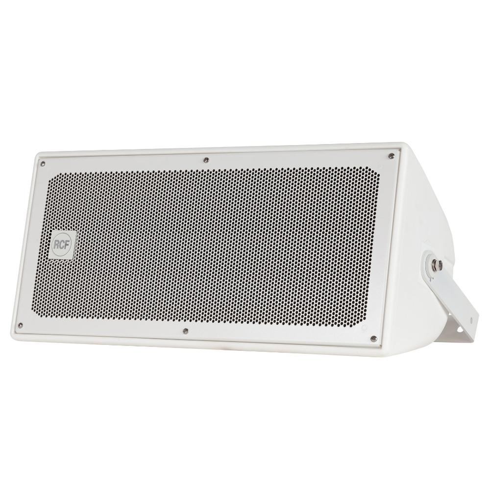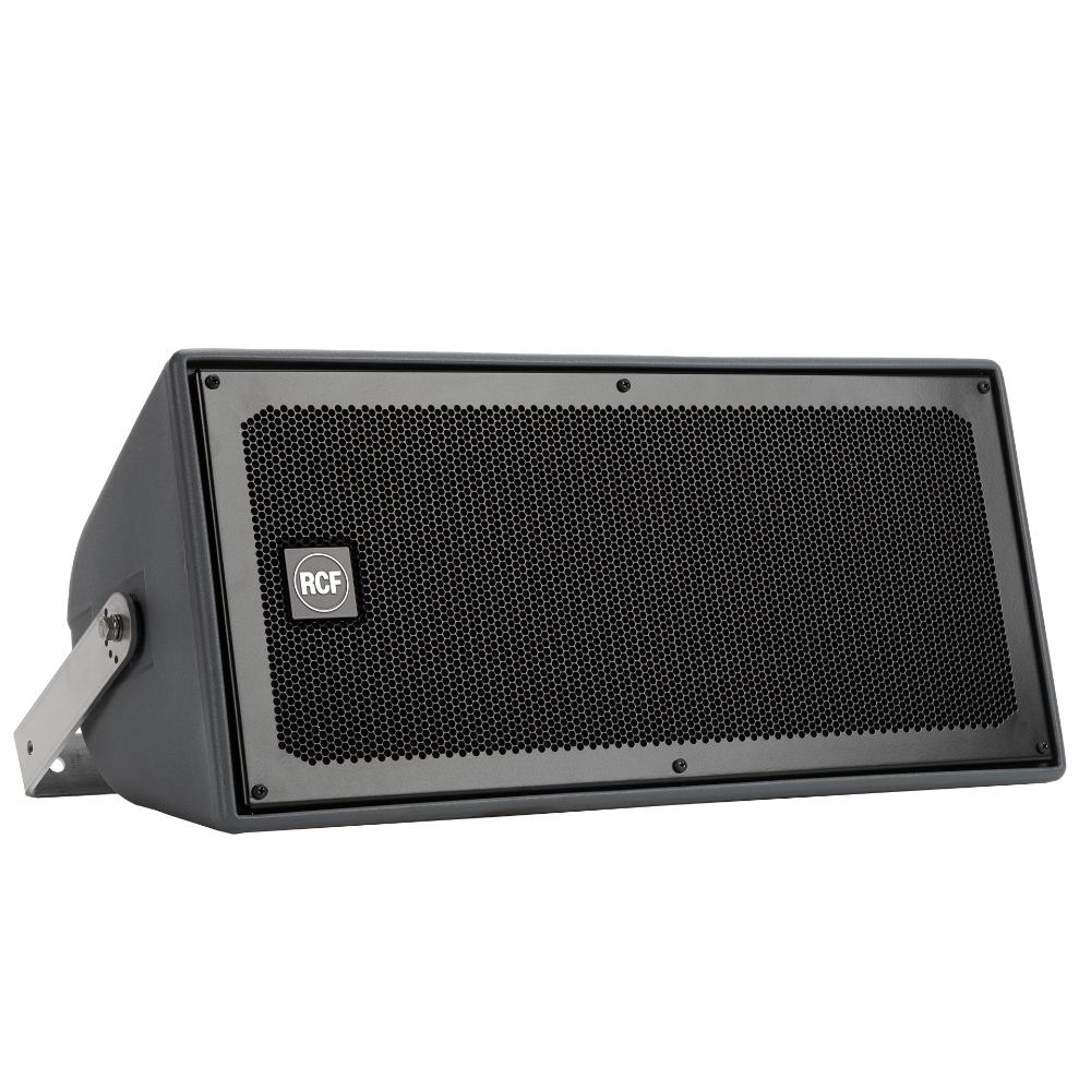 The P 4228 is a weatherproof full range, two-way speaker, suitable for a variety of professional indoor or outdoor applications. The speaker can be installed individually or coupled in array configurations. The high-frequency section includes a constant directivity CMD horn, loaded with a 1.4" RCF Precision neodymium compression driver with a 2.5" diaphragm assembly for smooth, highly controlled coverage. The low-frequency section combines two 8" woofers with a 2.5" voice coil. The symmetrical arrangement of the transducers delivers a controlled horizontal dispersion. Internal circuitry provides LICC crossover and Active Mosfet Compression Driver Protection (AMCDP). The single-piece roto-molded cabinet is fully UV protected and meets IP 55 standard requirements, equipped with M8 brass inserts (4x) and one corrosion-resistant 316P stainless steel U-bracket. Connections to the amplifier are made through a watertight multi-pole connector. The aluminum grille cover is powder coated with water-repellent backing material and has a rotatable logo plate.