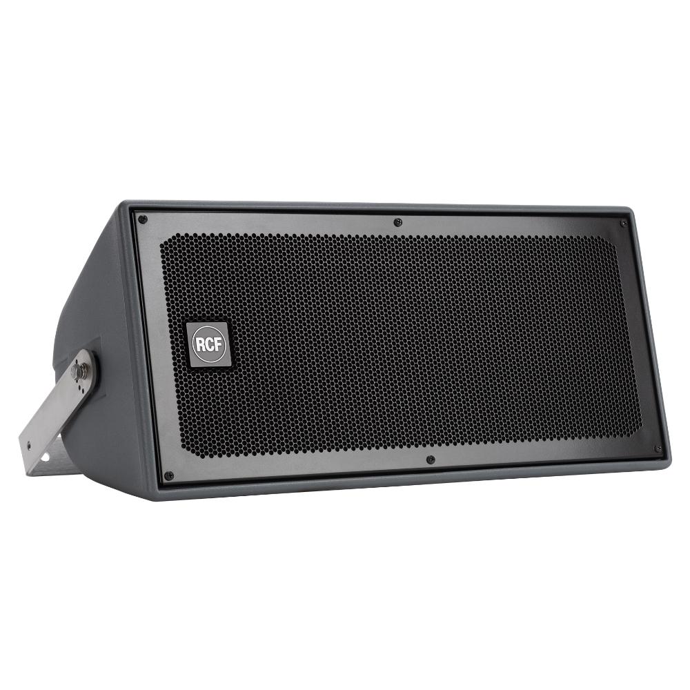 The P 5228-L is a weatherproof full range, two-way speaker, suitable for a variety of professional applications. The speaker can be installed individually or coupled in array configurations. The high-frequency section includes two constant directivity CMD horns, each loaded with a 1" RCF Precision neodymium compression driver with a 1.75" diaphragm assembly for smooth, highly controlled 20° vertical coverage. The low-frequency section combines two 8" woofers with a 2.5" voice coil. The symmetrical arrangement of the transducers delivers a controlled horizontal dispersion with consistent directivity. Internal circuitry provides LICC crossover and Active Mosfet Compression Driver Protection (AMCDP). The single-piece roto-molded cabinet is fully UV protected and meets IP 55 standard requirements, equipped with M8 brass inserts (4x) and a corrosion-resistant 316P stainless steel U-bracket. Connections to the amplifier are made through a watertight multi-pole connector. The front aluminum grille is powder coated with water-repellent backing material and has a rotatable logo plate.