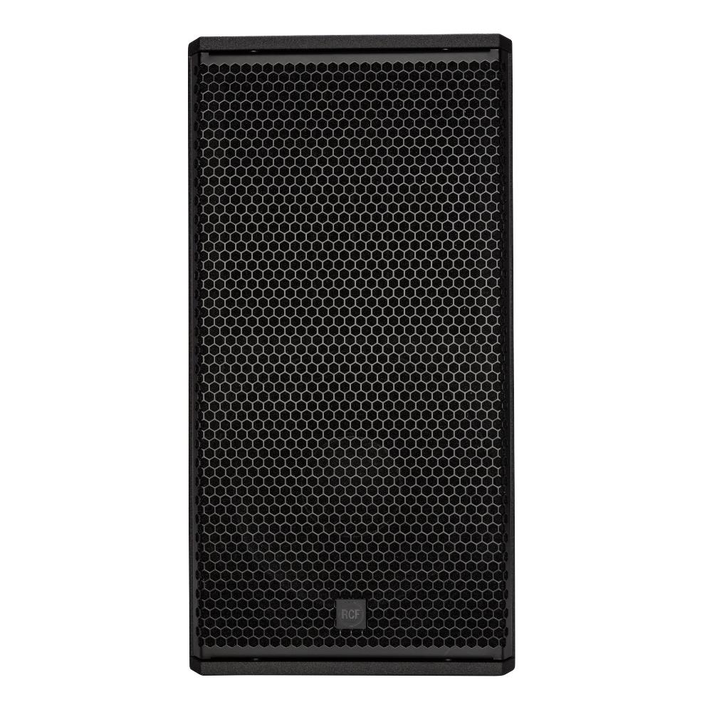 Q 15 is a two-way, bi-amp point source module for mid-distance and long-throw applications, combining a compact size with very high output and accurate speech and music reproduction. The system is equipped with the latest generation of RCF precision transducers featuring one 15" neodymium woofer and a 4" titanium-neodymium compression driver for a total of 1500 W power rating and 60° (vertical) and 22.5° (horizontal) directivity. The enclosure shape is trapezoidal and offers a 22.5° coupling angle on each side. Q Series typical applications span from point-source configurations for mid-distance applications to clusters up to 8 modules for long-throw applications. The grille is epoxy-coated, with a woven fabric backing for dust protection. The cabinet is made of multi-ply Baltic birch plywood with a highly resistant, textured, black polyurea finishing and features two rear-panel Neutrik Speakon NL4 connections for bi-amplification (4 poles)