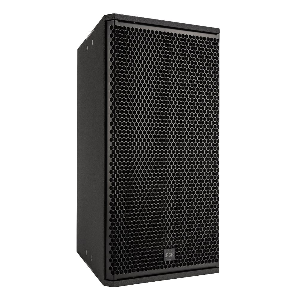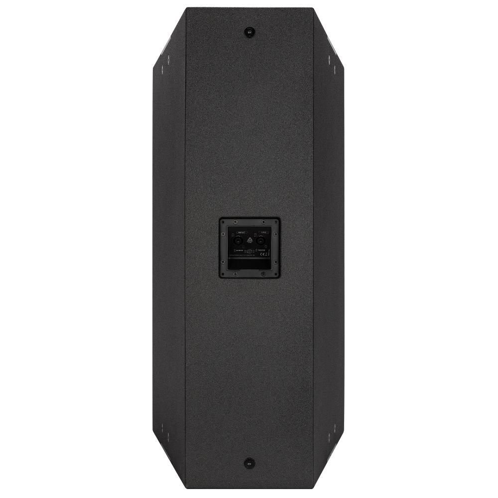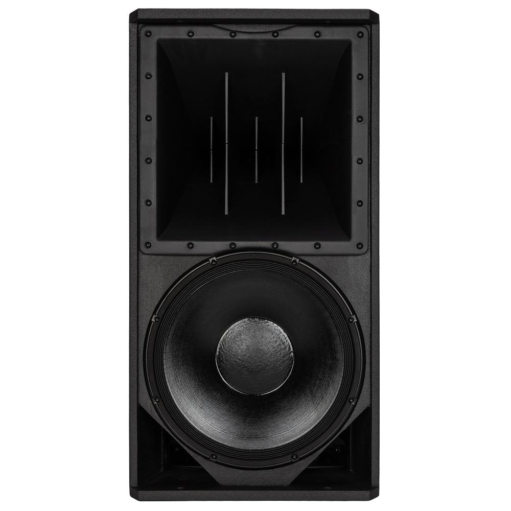 Q 15-L is a two-way, bi-amp point source module for mid-distance and long-throw applications, combining a compact size with very high output and accurate speech and music reproduction. The system is equipped with the latest generation of RCF precision transducers featuring one 15" neodymium woofer and a 4" titanium-neodymium compression driver for a total of 1500 W power rating and 90° (vertical) and 22.5° (horizontal) directivity. The enclosure shape is trapezoidal and offers a 22.5° coupling angle on each side. Q Series typical applications span from point-source configurations for mid-distance applications to clusters up to 8 modules for long-throw applications. The grille is epoxy-coated, with a woven fabric backing for dust protection. The cabinet is made of multi-ply Baltic birch plywood with a highly resistant, textured, black polyurea finishing and features two rear-panel Neutrik Speakon NL4 connections for bi-amplification (4 poles).
