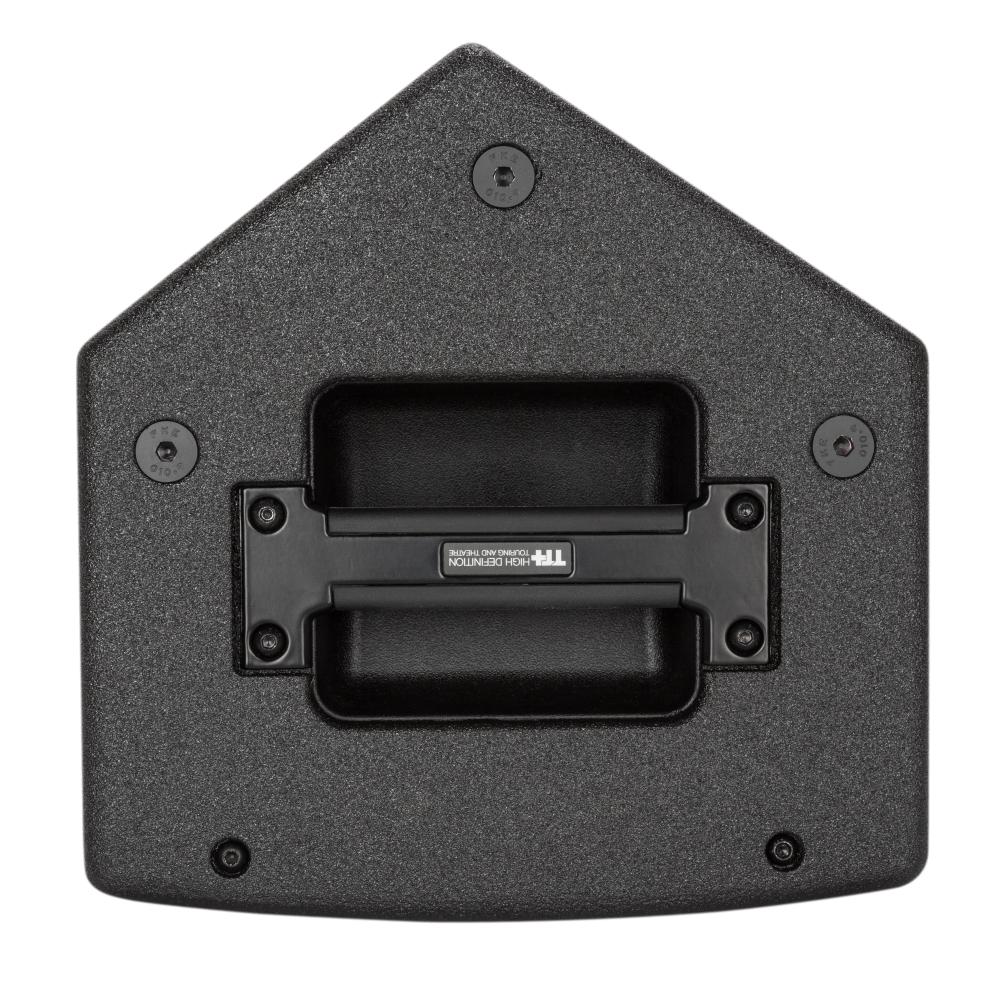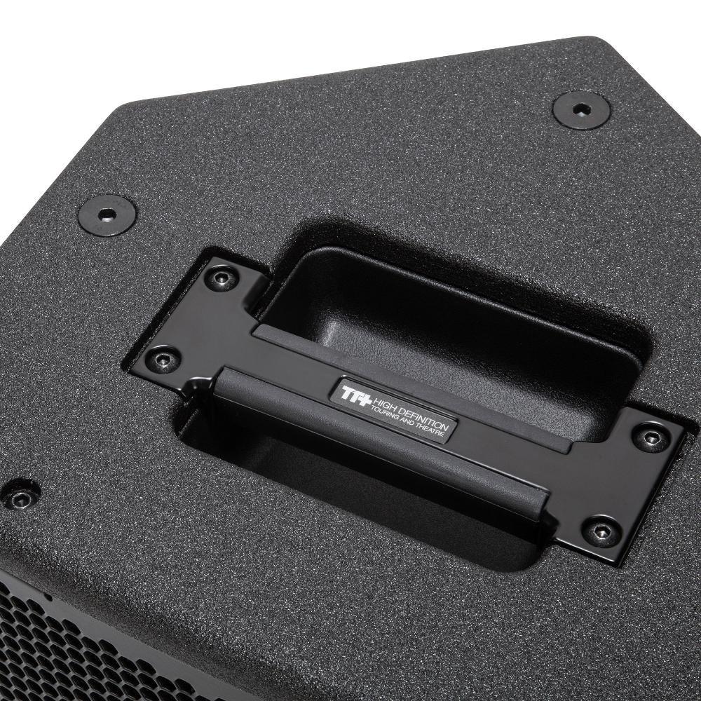 Pole mount, top and bottom M10 suspension points, quick fit bracket side sockets and a forged aluminum handle with rubber handgrip on top: the TT 08-A II cabinet it is fully equipped for every application. One side of the cabinet presents a 35° angle, perfect for stage monitoring.