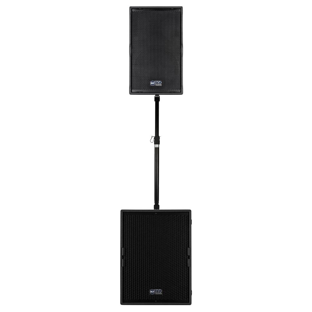 The RCF TT+ cabinets are made of high-quality birch plywood with weatherproof treatments. The subs are stackable and light-weight, for easy set-up and tear down. The polyurea coating and the rugged structure of the cabinet withstand long-term use and transportation and the separate housing for the amplifier guarantee the best components efficiency and reliability. A pole receptacle on the top and side allows the woofer to be used in various configurations. Transportation is fast thanks to the detachable Kart kit, a dolly caster-board with rugged tour grade casters and rotating cam mechanism.