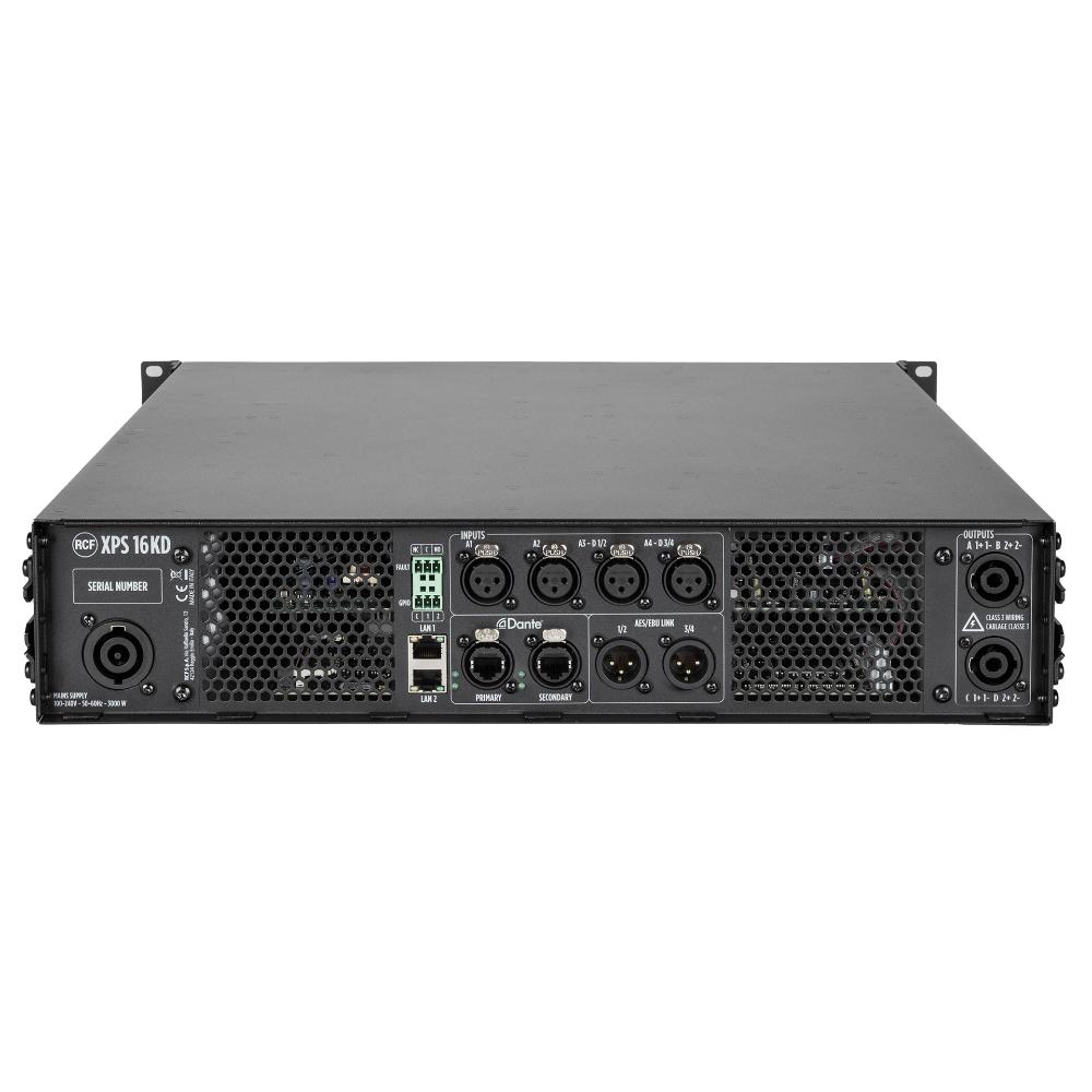 XPS 16K provides extreme power density with 4 x 4000 W continuous power outputs in 2 RU space for both touring and installed sound systems. The unit features 4 analog and digital AES/EBU inputs/outputs, a Dante Network ready design, and complete signal processing, tuning, and routing capability all at 96 kHz. Redundancy and full scalability are granted by the advanced and modular design of the circuitry. A complete set of RCF speaker presets is available, with powerful signal processing for complete system tuning.